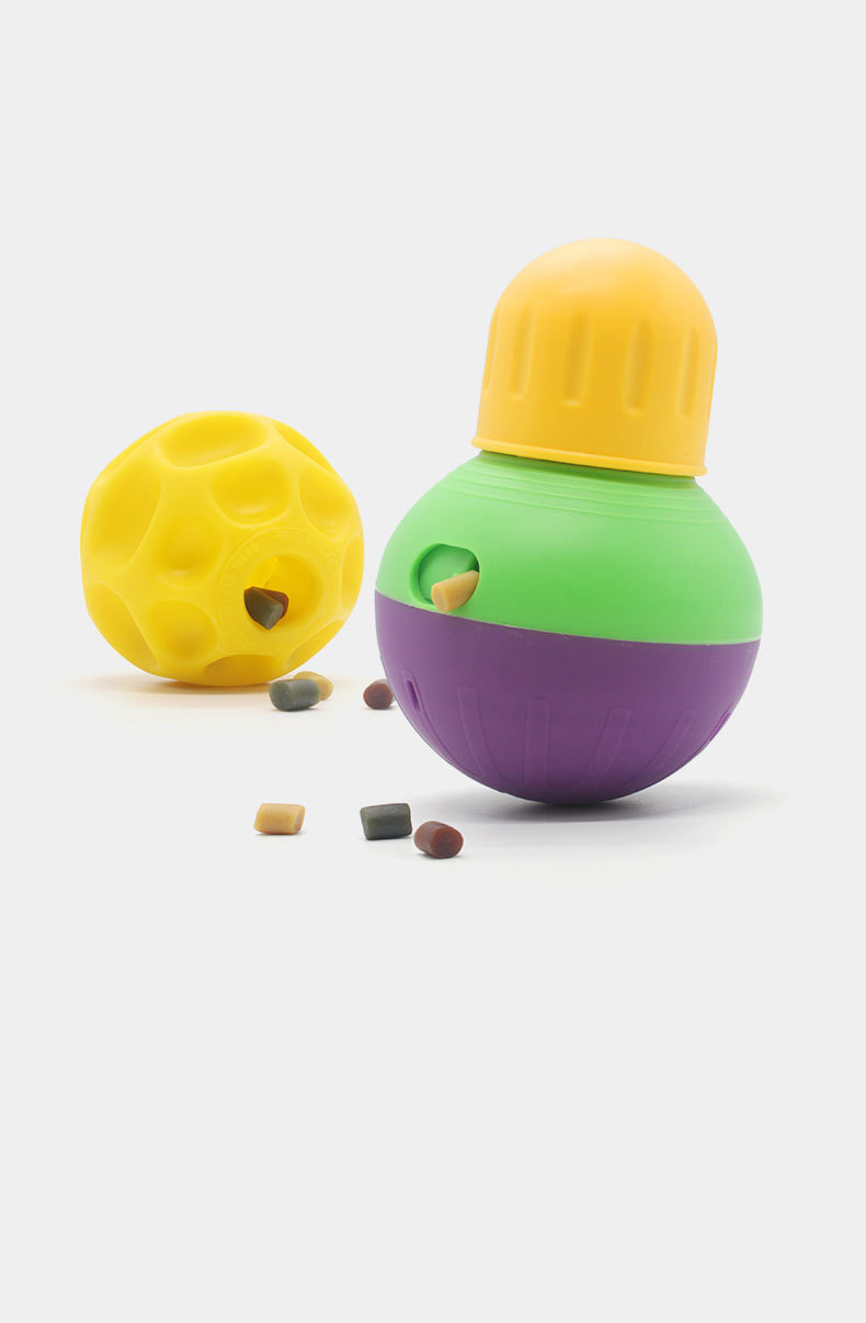 Introducing the STARMARK, the perfect solution to ease your furry friend's separation anxiety! This innovative and engaging toy is designed to keep your dog entertained and mentally stimulated while you're away. Its unique tumbler design ensures that it wobbles and rolls, creating an interactive playtime experience that encourages your pet to play and explore.